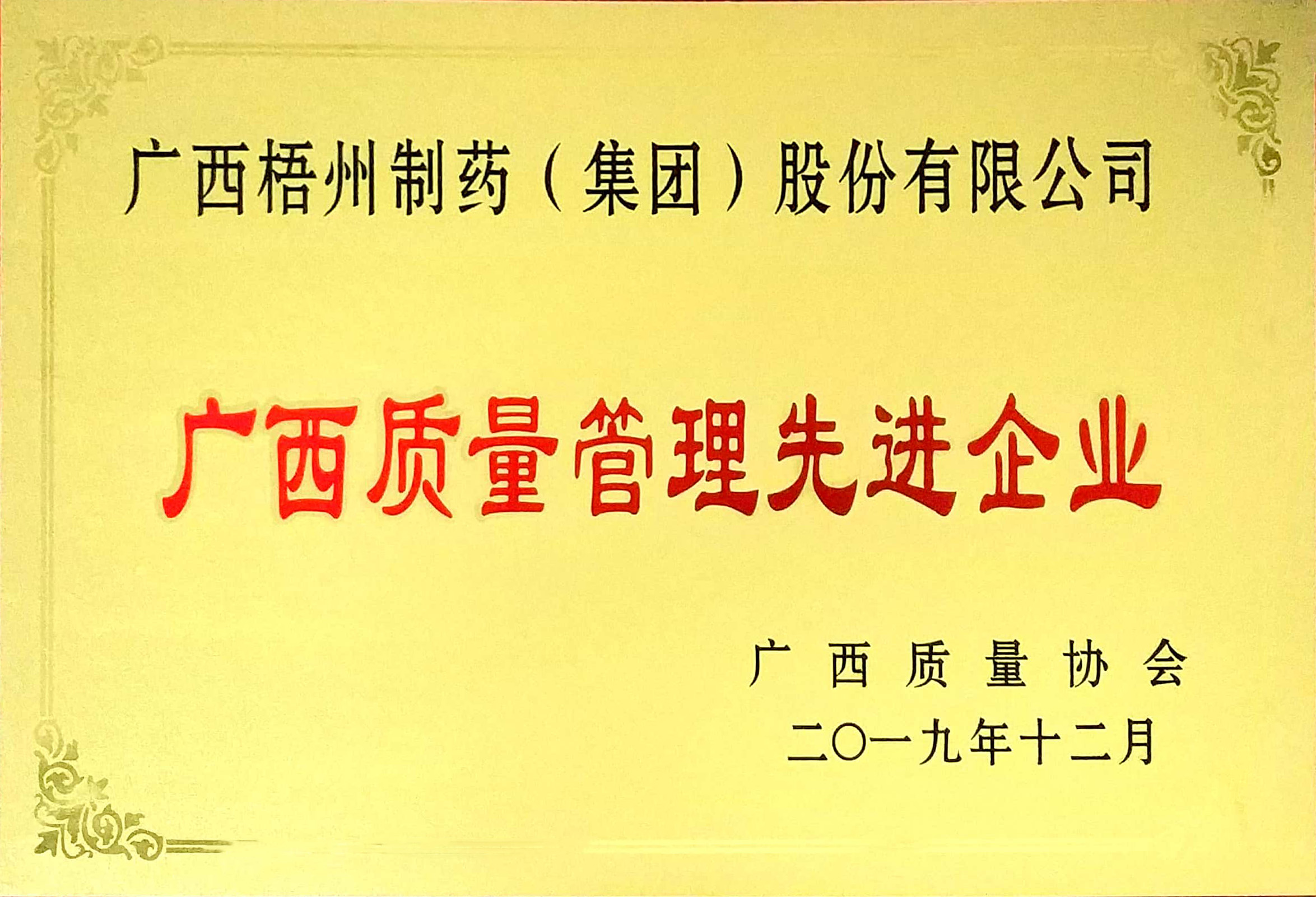 榮獲廣西質(zhì)量管理先進(jìn)企業(yè)稱號(hào)