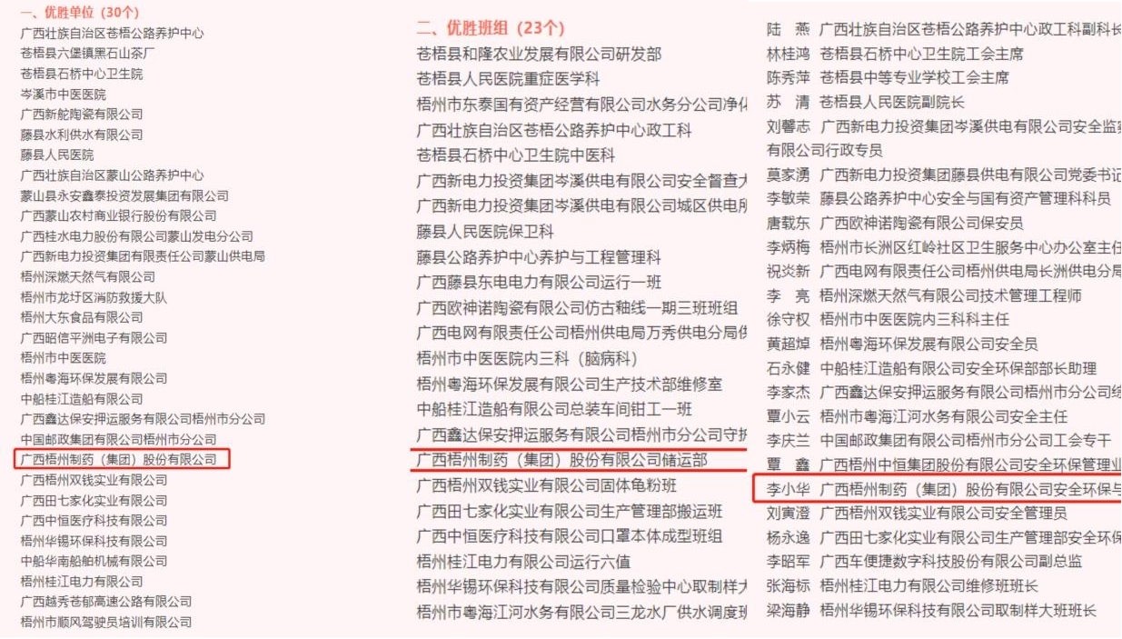 【筑造職工“安康”家】梧州制藥又獲獎(jiǎng)了
