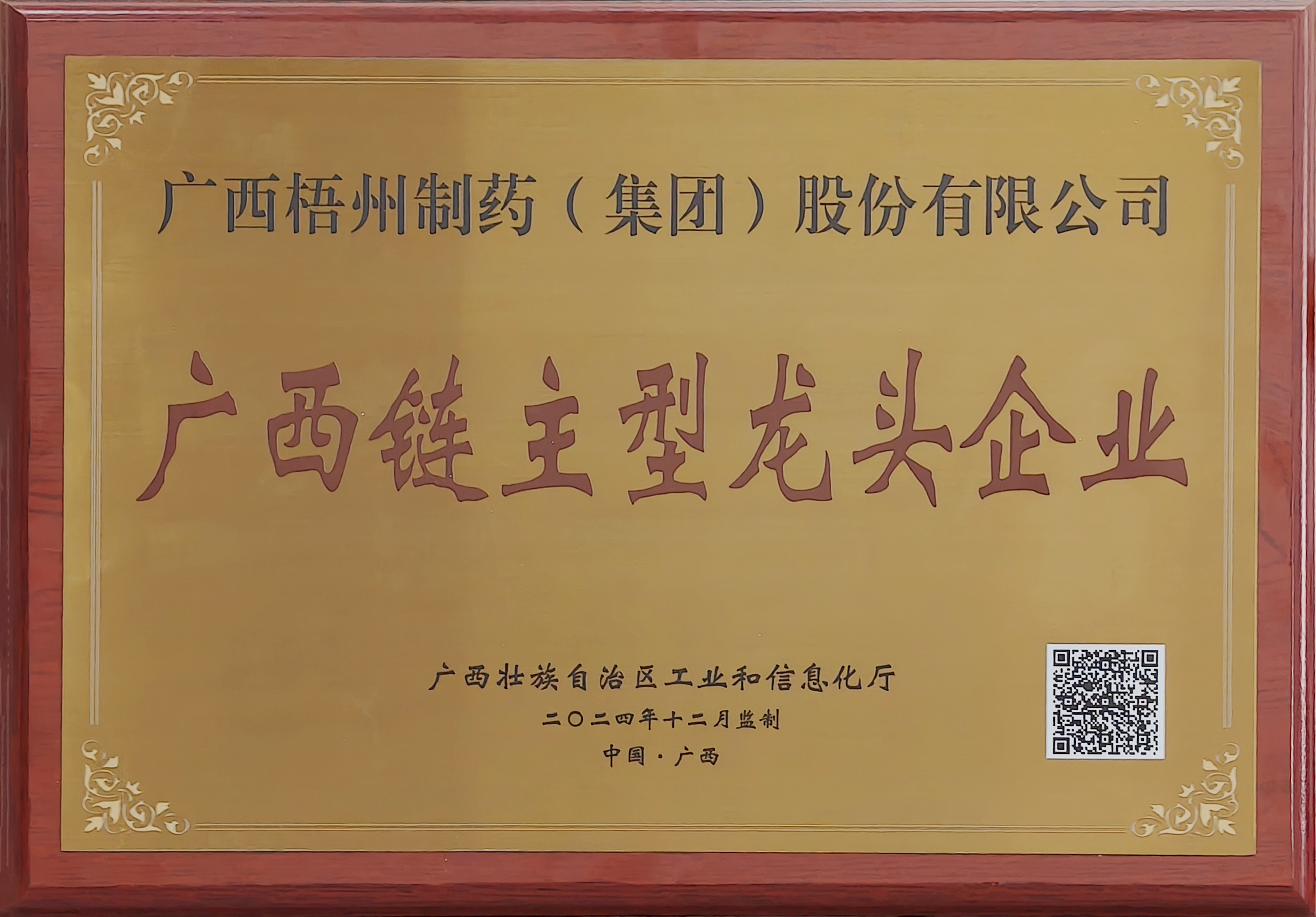 廣西梧州制藥(集團(tuán))股份有限公司榮獲廣西鏈主型龍頭企業(yè)
