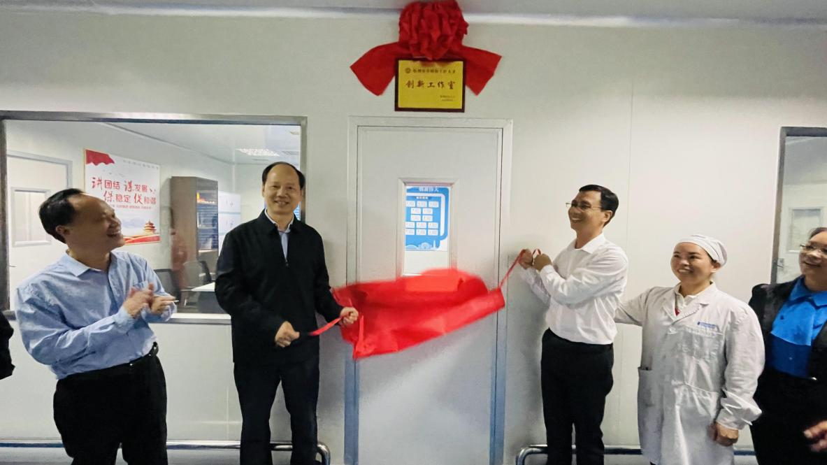中恒集團勞模創(chuàng)新工作室11月15日下午,以“廣西五一勞動獎?wù)隆薄拔嘀莨そ场鲍@得者雷潔萍命名的“雷潔萍勞模和工匠人才創(chuàng)新工作室”正式揭牌。至此,中恒集團共選樹培育4家勞模創(chuàng)新工作室。梧州市人大常委會副主任、總工會
