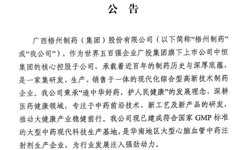 廣西梧州制藥(集團(tuán))股份有限公司招選公告廣西梧州制藥(集團(tuán))股份有限公司(以下簡(jiǎn)稱“梧州制藥”或“我公司”),作為世界五百?gòu)?qiáng)企業(yè)廣投集團(tuán)旗下上市公司中恒集團(tuán)的核心控股子公司,承載著近百年的制藥歷史與深厚底